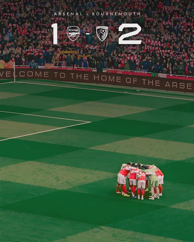 2026年4月11日,酋长球场。终场哨响,1-2的比分定格在大屏幕上——领头羊阿森纳在自己的主场爆冷输给了中游球队伯恩茅斯。赛前,Opta将枪手的夺冠概率抬升至97%,球迷们已经在盘算着22年来首个英超冠军的庆祝方式。然而90分钟后,北伦敦的空气里只剩下沉默,以及看台上提前退场的失落身影。